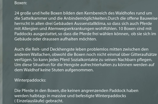 Home †ber uns Stallanlage Beritt/Reha Reitgeschþft Deckhengste Galerie Links Kontakt Impressum